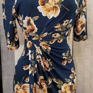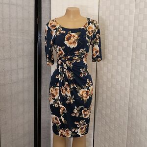 BRAND NEW CONNECTED APPAREL FLORAL COLORBLOCK RUCHED SIDE DESIGN 3/SLEEVE DRESS