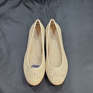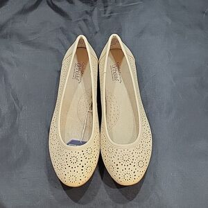 BRAND NEW CROFT&BARROW ORTHOLITE COMFORT WOMEN"S FLAT SHOE SIZE 61/2MED COLOR CREAM features Imported man made lining textile leather sock lining textile outsole man made materials Rubber sole Heel measures approximately 1.25 inches Perforated Upper Material Breathable microfiber lining Perforated arch support for comfort Flexible rubber bottom outsole Heel Height measurements apron 3/4" inches Mode Ballet Flat Style Ballet Type Flat Features Cushioned Upper Material Synthetic Closure Slip On Breathability is a must in the warm summer months! The croft & barrow flat Shoes is made for warm weather. The perforated design gives you ideal coverage, while creating airflow for your feet The padded insole gives you comfort under foot for all day wear THIS ITEMS IS BRAND NEW WITH TAG CHECK THE PICTURES