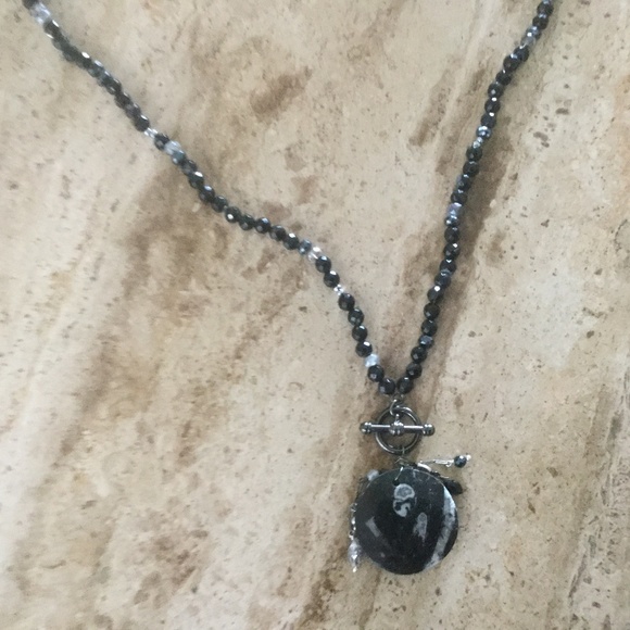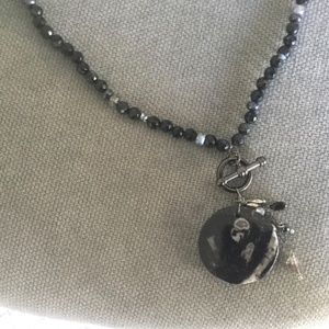 Brand new handcrafted Chan Luu 33inch black sardonyx necklace with black and grey round disk stone pendant. This alluring necklace has a hook clasp and extremely versatile color and style which I’ll pair beautifully with most wardrobes. This Chan Luu necklace was handmade ethically by an artisan in Vietnam.