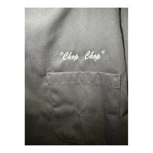 "Chop Chop" Chef Jacket Size 48 with checkered design down the sleeves.