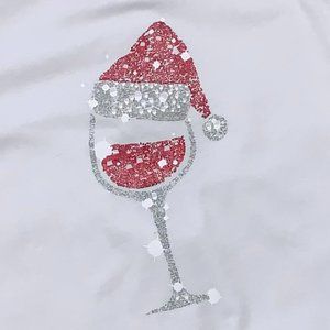 BRAND NEW Festive, fun yet fancy Christmas crew neck 3/4 sleeve shirt embellished with a glitter wine glass adorned with a Santa Hat. What better shirt to kick off the holidays??? See size chart in pictures measurements. Limited stock. From Smoke free home. Check out my other listings to bundle and SAVE on shipping costs. Boutique item/comes with plastic poly bag