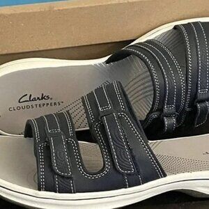 LADIES BRAND NEW Cloudsteppers by Clarks DARK blue sandals size 11 ..... Valcro adjustable straps
