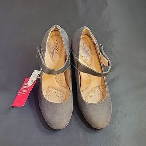 BRAND NEW DEXFLEX BY DEXTER DFX KAROL MJ HEEL SUEDE SHOE SIZE 5 COLOR GRAY MADE WITH FABRIC UPPER BALANCE MANMADE MATERIALS DESSUS TISSUES AUTRES SYNTHETIQUES  HEEL HEIGHT MEASUREMENTS APPROX 3"INCHES THIS ITEMS IS BRAND NEW WITH TAG CHECK THE PICTURES