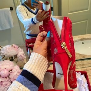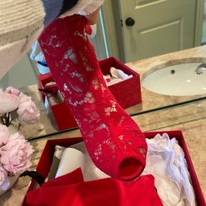 BRAND NEW DOLCE & GABBANA BETH RED LACW TOE ANKE BOOTS