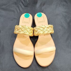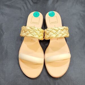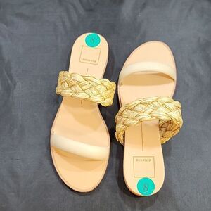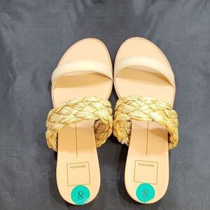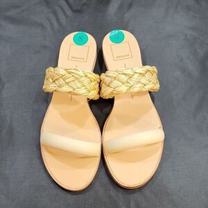 BRAND NEW DOLCE VITA DOUBLE STRAP SQUARE TOE FLAT buzzy SIZE 9 COLOR WHITE &TAN he best of both worlds. PERSEY pairs this season's buzzy braid detail with sleek raffia or clear vinyl straps, achieving a cool juxtaposition we can't get enough of. Raffia Upper Rubber Outsole Synthetic Sock Synthetic Lining 1" Heel Height THIS ITEMS IS BRAND NEW WITH TAG CHECK THE PICTURES