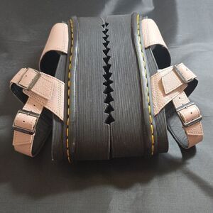 BRAND NEW DR MARTENS VOSS II ATHENA LEATHER STRAP PLATFORM SANDALS SIZE 6 COLOR LAVENDER & BLACK PLATFORM Our 2-strap Voss II sandal ready for the height of summer. A sleek minimalist design built with PU-coated Athena leather for a smooth soft finish. For those days out that spill into a night out. Towering on a 3 inch Quad Zebrilus sole, for maximum elevation with minimum weight. 2 gunmetal buckles on the ankle provide for a secure and comfortable fit. Finished with our signature yellow welt stitch.Athena is a smooth PU coated leather with a matte finish