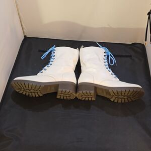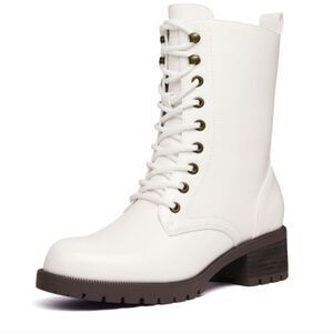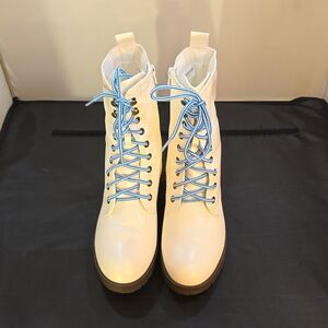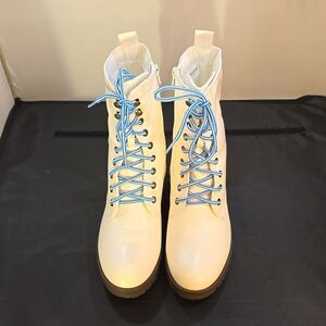 BRAND NEW DREAM PAIRS LACE-UP ROUND-TOE WOMEN'S BOOTS SIZE 8 COLOR WHITE WITH BLUE LACE-UP MADE WITH ALL MAN-MADE MATERIAL LINING UPPER MAN-MADE MATERIAL HEEL HEIGHT MEASUREMENTS APPROX 1/2"INCHES THIS ITEM IS BRAND NEW WITH TAG NO BOX CHECK THE PICTURES