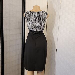 BRAND NEW DRESS BARN INVIBLE ZIPPER CLOSURE SHEATH DRESS SIZE 16 COLOR BLACK &WHITE SLEEVELESS WITH WIDE ROUND NECK LINE INVINCIBLE ZIPPER CLOSURE TWO TONE DRESS MADE WITH 100% POLYESTER BUILT-IN BELTS LOOP AND BELT SPLIT IN THE BOTTOM BACK THIS ITEMS IS BRAND NEW WITHOUT TAG CHECK THE PICTURES