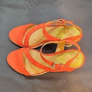 BRAND NEW DV BY DOLCE VITA MULTI-STRAP WEDGE STYLE OPEN TOE SANDAL SIZE 9 COLOR ORANGE ADJUSTABLE BUCKLE CLOSURE ANKLE STRAP MADE WITH ALL MAN MADE MATERIALS LINING UPPER TEXTILE BALANCE MANMADE MATERIALS HEEL HEIGHT MEASUREMENTS APPROX 4"INCHED THIS ITEMS IS BRAND NEW WITHOUT TAG CHECK THE PICTURES