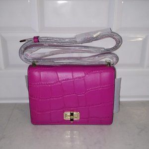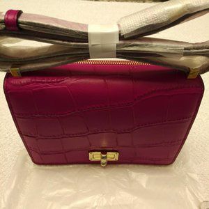 BRAND NEW DVF CROCODILE EMBOSSED LEATHER HANDBAG IN SUMMER BEET (FUSCHIA) COLOR