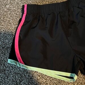 Brand new Nike athletic dri-fit black shorts with vibrant trim in different colors. Nike swoosh logo on the front. Perfect for active wear. Size 4T. They have liner inside.