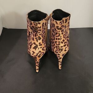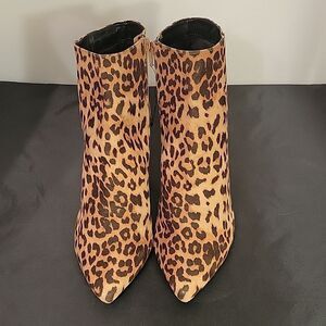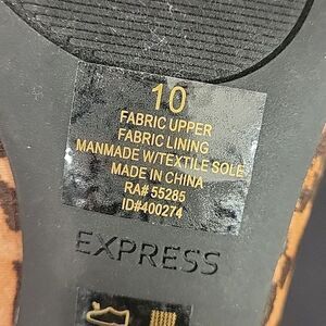 BRAND NEW EXPRESS LEOPARD PRINT SUEDE POINTED TOE WOMEN"S ANKLE BOOT SIZE 10 COLOR TAN, BROWN SIDE ZIPPER CLOSURE MADE WITH SYNTHETIC SOLE FABRIC UPPER FABRIC LINING MAN-MADE WITH TEXTILE SOLE HEEL HEIGHT MEASUREMENTS APPROX 3"INCHES