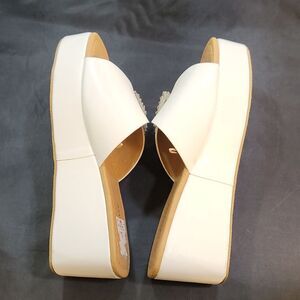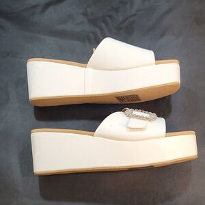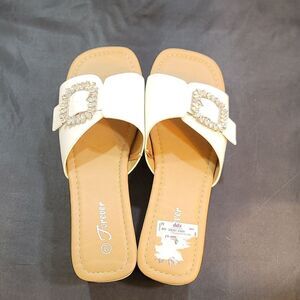 BRAND NEW FOREVER OPEN-TOE BLOCK HEEL ESPADRILLE WEDGE SANDAL SIZE 9 COLOR WHITE FEATURING A ADJUSTABLE STRAP RHINESTONE EMBELLISHMENTS BUCKLE CLOSURE MADE WITH ALL MAN-MADE MATERIALS HEEL HEIGHT MEASUREMENTS APPROX 3"INCHES THIS ITEMS IS BRAND NEW WITH TAG NO BOX CHECK THE PICTURES