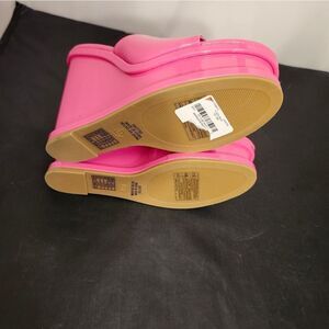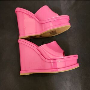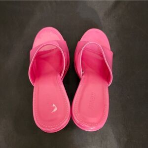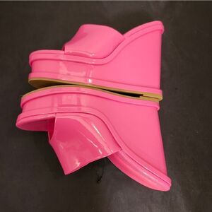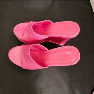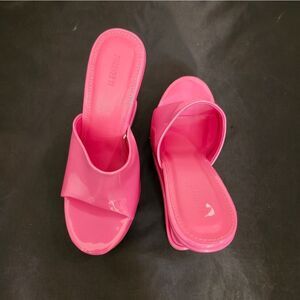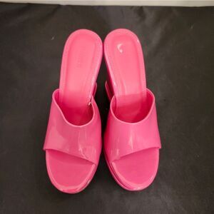BRAND NEW FOREVER OPEN-TOE PLATFORM BLOCK-HEEL SANDAL SIZE 6.5 COLOR PINK ALL MAN-MADE MATERIALS LINING BALANCE MAN MADE HEEL HEIGHT MEASUREMENTS APPROX 4"INCHES THIS ITEMS IS BRAND NEW WITH TAG NO BOX CHECK THE PICTURES (FYI THE FIRST PICTURES IS JUST A MODEL TO SHOW WHAT THE SHOE LOOK ON CHECK THE PICTURES)