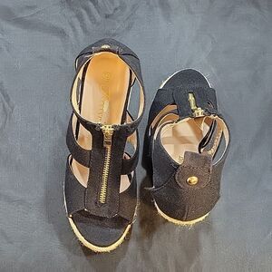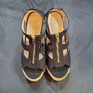 BRAND NEW FOREVER WOMEN"S DAMITA OPEN TOE CASUAL ESPADRILLE SANDAL SIZE 5 COLOR BLACK ZIP CLOSURE ANKLE STRAP HEEL TYPE WEDGE PLASFORM HEIGHT 1.25 MATERIALS SYNTHETIC SOLE MATERIAL MANMADE HEEL HEIGHT MEASUREMENTS APPROX 4"INCHED THIS ITEMS IS BRAND NEW WITHOUT TAG CHECK THE PICTURES (FYI THIS ITEMS HAVE A TINY DAMAGE IN ONE OF THE INSOLE CHECK THE PICTURES