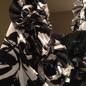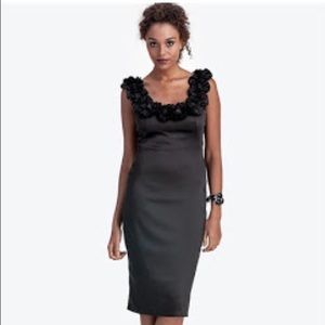 Brand new floral silk dress with slit and beautiful floral detail on collar. Perfect for wedding season or a sophisticated cocktail party!