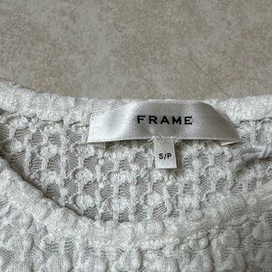 Elegant ivory knit top by Frame Denim. Features a unique textured design.