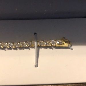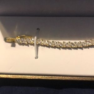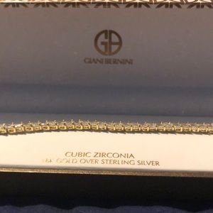 This brand new item is with the original box and tags. This bracelet is beautiful with its 18k gold over sterling silver design. It catches your eye with the diamonds its covered in. Great gift for valentines day!