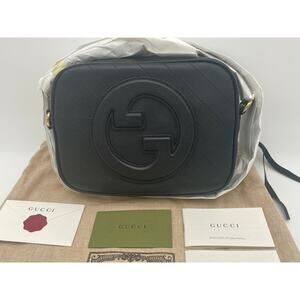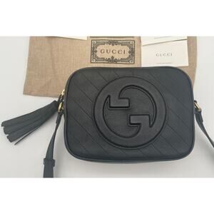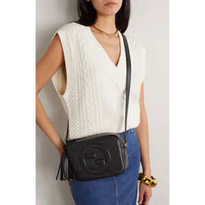 BRAND NEW GUCCI BLACK GG BLONDIE LEATHER TASSEL CAMERA CROSSBODY BAG PURSE