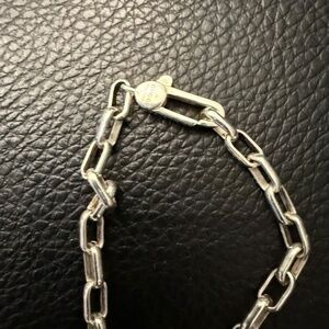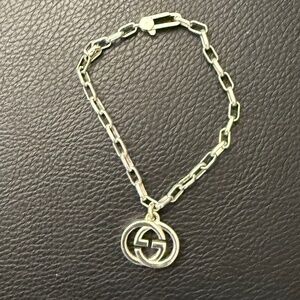 Brand new with original Gucci box & Gucci pouch: Gucci interlocking Double G charm paperclip chain bracelet in sterling silver. This has remained one of the most iconic symbols of the house since its introduction. The distinguishing symbol is made in 925 sterling silver and hangs from a sterling silver bracelet crafted in a high polished finish with a lobster closure. The label on the box says size 7/8. The bracelet retails for $355 (see photo..the photos are part of the description). I will ship as soon as payment is made to Poshmark. I only correspond on this site.