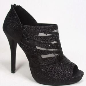 BRAND NEW GUESS WOMEN'S SEXY LACE GLITTER OPEN TOE ZIPPER HIGH HEEL SHOES
