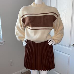 ❤️BRAND NEW Gilli Ivory Brown Stripe Mock Sweater