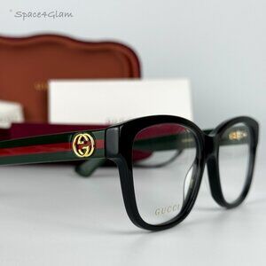 BRAND NEW Gucci GG0038ON 011 Black Green Demo Square Women Eyeglasses