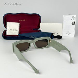 BRAND NEW Gucci GG1426S 004 Solid Sage Brown Unisex Rectangle Sunglasses GG 1426S