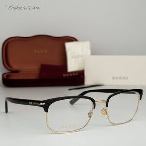 BRAND NEW Gucci GG1448O 001 Gold Black Demo Rectangle Unisex Eyeglasses