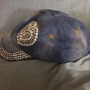 Adjustable on back with jeweled heart and liner. Never worn before but didn't come as the product I wanted in the mail from store. Jean Material.