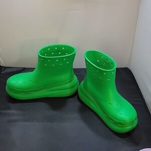 BRAND NEW ICONIC CROCS CRUSH COMFORT RAIN BOOT MEN'S SIZE 5 WOMEN"S SIZE 7 COLOR GREEN CROCS PLATFORM BOOTS This new all-weather boot was born from the Classic Crush Clog and boasts a unique 2-inch / 5.2cm height (measured from floor to heel rest)NKLE BOOTS: With height that falls just below the calf, the fit is flattering for everyone, plus they’re easy to take onand off These boots offer a roomy fit and we comfort These rain boots for women and men feature lightweight Iconic Crocs Comfort Jibbitz shoe charms to your Crocs to show your unique style and creativity Description This "it" boot is functional for rain, but versatile for any occasion, with year-round appeal for those looking for bold, unique, iconic style. Part of the new Crush collection, this dynamic new boot features modern style, added height, and trend-right, easy to wear shaft height. Plus,Composition: 100% % Jibbitz™ holes on the shaft collar makes it easy to personalize. The Crocs comfort you love, in a waterproof boot, with an extra dose of height, attitude, and style. This "it" boot is functional for rain, but versatile for any occasion, with year-round appeal for those looking for bold, unique, iconic style. Part of the new Crush collection, this dynamic new boot features modern style, added height, and trend-right, easy to wear shaft height. Plus, Jibbitz™ holes on . THIS ITEMS IS BRAND NEW WITH TAG NO BOX CHECK THE PICTURES