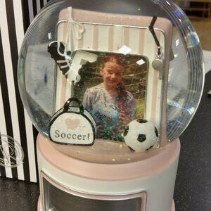EXTRA LARGE SNOW GLOBE. NEW IN BOX. READY FOR YOU TO PERSONALIZE WITH YOUR OWN PHOTO. Girls Soccer Theme Photo Globe. Queen :" We are the Champions" wind up musical Water Globe New NIB In Box . Holds 2 photographs (1 per side). Allows for custom name engraving on plate area.