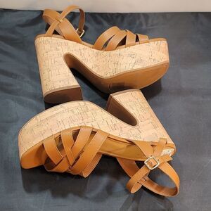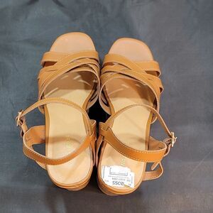 BRAND NEW INDIGO OPEN-TOE BLOCK HEEL SANDAL SIZE 81/2M COLOR TAN made with Rise above the crowds with these indigo wedge cognac leather sandals and their super-chunky cork platform sole. Silence the naysayers. Featuring a strappy design, a side buckle fastening and a platform sole. composition Outer: Leather 100% Lining: Leather upper 100% Sole: Rubber 100% Textile lining Textile man-made heel height measurements apron 4"inched interlocking strap design, patent, open round toe, and buckle ankle strap will do just the trick. Keeping your needs satisfied THIS ITEMS IS BRAND NEW WITH TAG CHECK THE PICTURES
