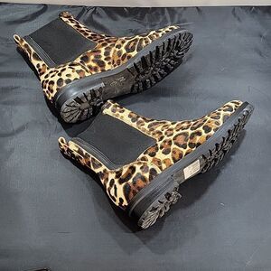 material.Slip-on construction with pull-on tab. Round-toe silhouette.Rubberized lugged outsole for added Made from leopard-printed calf hair, the Margot Booties merge style, comfort, and practicality. traction.Imported.Measurements:Heel Height: 1 in Weight: 1 lb 1 oz Shaft: 7 in THIS ITEMS BRAND NEW WITH TAG NO BOX CHECK THE PICTURES