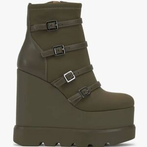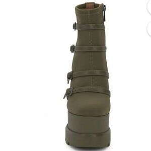BRAND NEW JESSICA SIMPSON CHAELA HEEL PLATFORM BOOTS BUCKLE VAMP STRAPS WEDGE BOOT SIZE 9M/40 COLOR OLIVER GREEN Manufacturer Jessica Simpson Origin - US Style Type - Ankle Boots Collection Jessica Simpson Closure Material Manmade Fabricheight in this punk bootie that gives you an edge with a hearty platform, towering wedge and glitning hardware. The upper material of the shoes is synthetic. The shoes have an inside zipper closure.The shoes have a round toe. The leg opening of the shoes is approximately 4.5 inches.The shoes have a platform measuring 1.4 inches and a wedge heel measuring 4.2 inches.Get serious height in this punk bootie that gives you an edge with a hearty platform, towering wedge and glitning hardware.