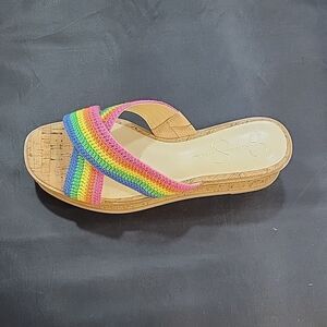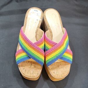 BRAND NEW JESSICA SIMPSON ELIZA CROCHET PLATFORM SANDAL SIZE 8M/39 MULTI-COLOR LIKE YELLOW, GREEN, ORANGE, BLUE AND MORE Sandal Whether you want a pop of color or to stick with the basics, front strap is just what your warm-weather From Jessica Simpson, the Ediza Rainbow Crochet Platform Wedge Sandals feature construction Slip on design Synthetic lining Rubber outsole Approx. 1.7" platform height Approx. 2.7" heel height wardrobe needs. Upper: Manmade, fabric, textileDesign: Slide platform sandal; crochet X-band front strap Toe Type: Open, round Back Open Closure: Slip-on Lining: Manmade THIS ITEMS BRAND NEW WITH TAG NO BOX CHECK THE PICTURES