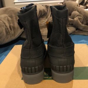 Brand new, NEVER worn! Waterproof duck boot. I had planned to wear them even on days when it wasn’t raining because they’re in such style!! They almost look like biker boots and are jet black. Says size 9 but they run small I’m an 8 &1/2 and they were too small for me, so they’d would fit a 7 1/2 to size 8 if you wanna wear heavy socks. They’re an awesome style for being duck boots, I waited too long to return them.I got them from Nordstrom‘s and paid 125+shipping. Price negotiable!!