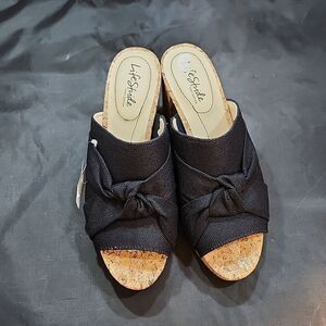 BRAND NEW LIFESTRIDE WOMEN'S, LAGUNA SANDAL SIZE 10M COLOR BLACK Sole materia Rubber Outer material Linen Closure type Pull-On About this item Fabric, linen of canvas upper with knotted accent Peep toe Slip-on style Soft System® comfort cushioning Traction soleWomen's LifeStride, Laguna Sandal The Life Stride Laguna Slide is constructed with a soft system comfort package for all-day support, flex, and cushioning. This refreshingly fun cork-wrapped platform sandal with knotted upper details will look great with everything from jeans to dresses. Faux leather uppers Insole partially crafted with recycled materials Soft System comfort footbed for all-day support and cushion Cork-wrapped platform 3.5 inch heel Synthetic traction outsole. Heel Height of 3.50 inches THIS ITEMS IS BRAND NEW WITH TAG NO BOX CHECK THE PICTURES