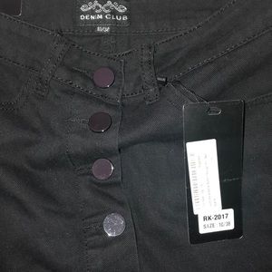 NEVER WORN except for 1 try on. I bought this from Boohoo online and it ended up being too short on me (I’m 5’8). Material is black denim. 2 pockets with buttons in the front. No pockets on back. Semi-stretchy denim. Size 10 but fits 4, trust me! The sizing is very off according to the reviews. Very cute and stylish. Wish I didn’t have to sell. 💗