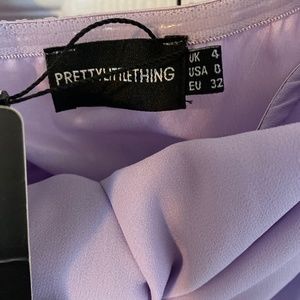 Pretty little thing satin dress. Rouched sleeves. Never worn. Petite