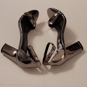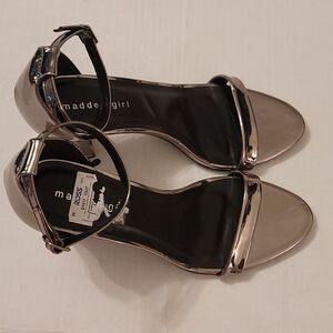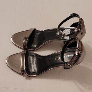 BRAND NEW MADDEN GIRL G-BINDI POINTED TOE SANDAL SIZE 10 COLOR SILVER METALLIC all man-made materials Fabric Crafted from laminated leather-effect synthetic fabricAdjustable ankle strap Stiletto heels Leather sole Heel height measurements approximately 3"inched THIS ITEMS IS BRAND NEW WITH TAG CHECK THE PICTURES (FYI THE FIRST PICTURES IS JUST A MODEL TO SHOW WHAT THE SHOE LOOK ON CHECK THE PICTURES)