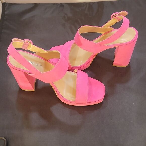 BRAND NEW MADDEN GIRL MINE BLOCK HEEL OPEN-TOE PLATFORM SANDAL SIZE 9.5M COLLOR PINK Sole material Polyurethane Outer material Fabric Closure type Buckle Madden Girl lock Heel Buckle closure Mine Fabric upper Synthetic lining sock fabric coat arch cushion support the foot without fatigue outsole Polyurethane sole Description Madden Girl's MINE dress sandal. footwear The designer and creator of the Madden Girl shoes are among the most beautiful and finely crafted footwear heel height measurements approximately 4.25"inched THIS ITEMS IS BRAND NEW WITH TAG AND BOX CHECK THE PICTURES