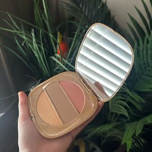 Brand new without the box and VERY hard to find - I just swatched the blush (which you can't tell as shown in the picture). This is a gorgeous trio in an even more gorgeous compact.
