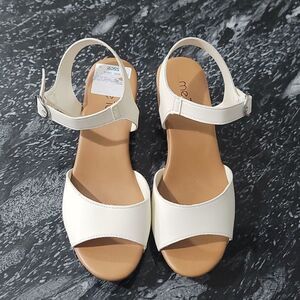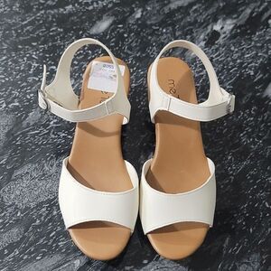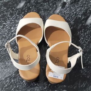 BRAND NEW ME TOO WOMEN'S FAUX LEATHER HEEL SANDALS SIZE 8M/38 COLOR WHITE with CORK WEDGE Ideal For Women Occasion Casual Heel Height 2.75"Shoe Closure Adjustable buckle closureSole Material Synthetic soleShoe Material Synthetic LeatherColor Family Heel Type Block Heels Insole Features Leather insole THIS ITEMS IS BRAND NEW WITH TAG NO BOX CHECK THE PICTURES