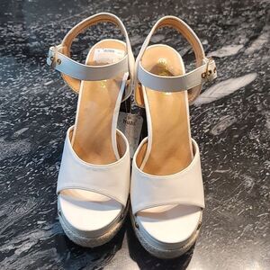 BRAND NEW MUDD CHUNKY PLATFORM ROUND-TOE HEEL STUDDED SANDALS SIZE 11M COLOR WHITE made with all man-made materials elegant platform sandals chunky, fashion square toe keep your style, comfortable platform keep your feet relax all day, sturdy chunky heel keep your safety. trendy round toe toe heels with studed platform, make the shoes more special. the chunky adjustable buckle ankle strap closure this platform evening sandals with studed is suitable for any party, Good choice for dance party, club night,2k outfits, wedding, red carpet show or just daily wear. heel height measurements approximately 5-inch THIS ITEMS IS BRAND NEW WITH TAG NO BOX CHECK THE PICTURES(FYI THE FIRST PICTURES IS JUST A MODEL TO SHOW WHAT THE SHOE LOOK ON CHECK THE PICTURES)