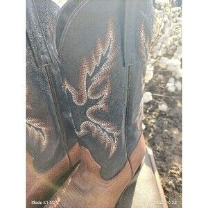 Step into these beautiful Masterson Boot Co. cowboy boots and add a touch of Western flair to any outfit. The blue and brown leather upper features gorgeous embroidered accents that complement the pointed toe and mid-height heel. These boots are perfect for any occasion, whether it's casual wear or a more formal setting like a wedding or business event.