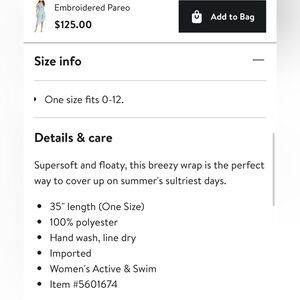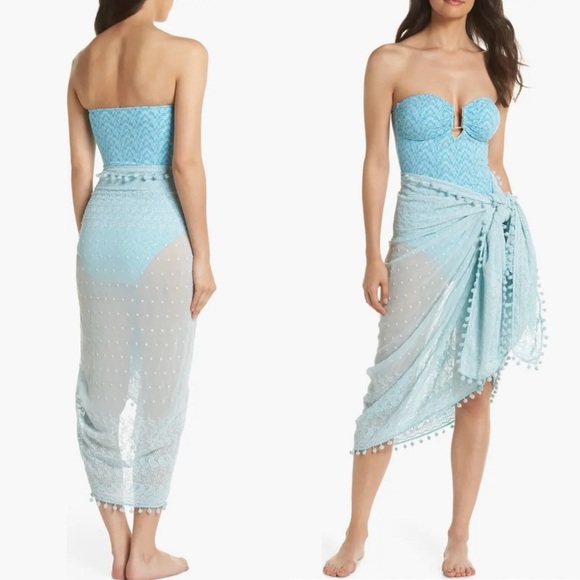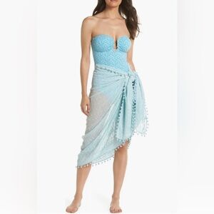 BRAND NEW Melissa Odabash Embroidered Pareo in Celeste Blue One Size Coverup