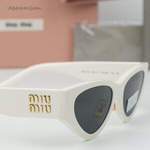 BRAND NEW Miu Miu MU03ZS 1425S0 White Dark Gray Cat Eye Women Sunglasses MU 03ZS