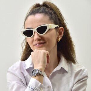 Miu Miu MU03ZS 1425S0 sunglasses are a chic and fashionable accessory, perfect for elevating your style. Featuring dark grey lenses that perfectly complement the sleek white cat-eye frame, these sunglasses offer a blend of classic and contemporary flair. Crafted from premium acetate material, they ensure durability and comfort.