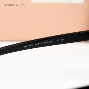 Miu Miu MU10ZS 1AB5S0 sunglasses are a chic and sophisticated accessory that elevate any ensemble. Featuring a striking black frame, these sunglasses boast dark grey lenses for a timeless look. The elegant design is characterised by a distinctive square shape, crafted from high-quality acetate material for durability and comfort.